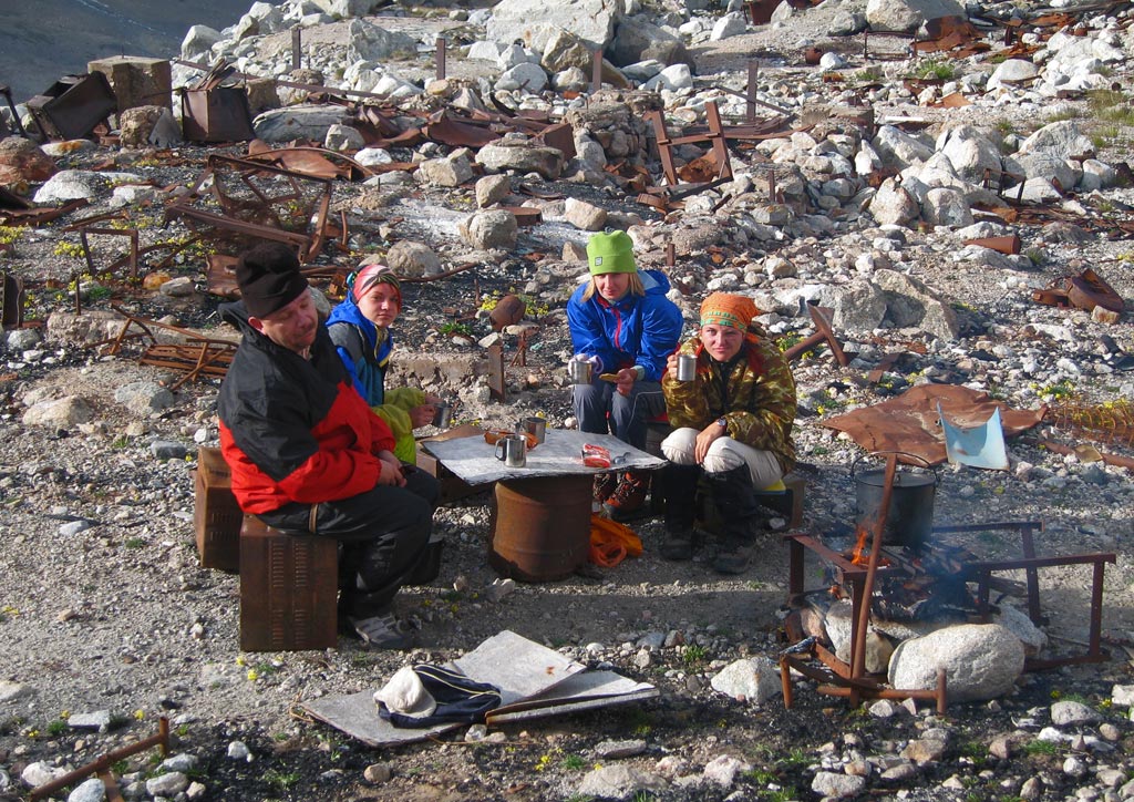 Наша "столовая" на развалинах ГМС Абрамова. Сами себе напоминаем бомжей. << начало >>