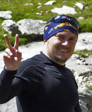 Просыпаемся в пять утра. Дежурные уже приготовили завтрак. Позавтракав, начали собираться, но снова пошёл дождь, загнавший нас обратно в палатку. Валяемся до девяти часов, ожидая окна в погоде. Вскоре тучи рассеялись и начало светить Солнце. Выходим на маршрут. Траверсируем травяной склон, двигаясь в обратном направлении. Постепенно набираем высоту и выходим на крупный курумник. Преодолев его и остановившись на небольшой полянке, замечаем людей, что шли по противоположному берегу реки, которая бежала по склону. Как раз по той тропе, которая вела к перевалу. В итоге, проложив свою дорогу, выходим к тропе, ведущей к перевалу, пересекая поляну с красивым водопадом (Райские ночевки). По тропе, промаркированной турами, выходим к перевальному взлёту, крутизна которого составляет примерно 30 градусов. С перевала Малый Кичкинекол сняли записку группы из Санкт-Петербурга, сфотографировались и начали спускаться вниз. На ночёвку решили встать на "аэродроме" – больших полянах в ложе долины. Присмотрели для этого уютный камень. После обеда традиционно набегают тучи и льёт дождь, но мы не отчаиваемся и не поддаёмся погоде. Весело сидим в палатке, проверяем Наташкину новую пенку на водостойкость. Под вечер дождь прекратился и каждый занялся своим делом. Юрик, Женька и Макс поют песни, Димон фотографирует звёзды, Игорёха дремлет, девчонки сплетничают в палатке о чем-то своём. Светит яркая луна, на небе ни облачка. Рассуждаем о том, на какой завтра перевал идти. По плану в маршруте заявлен перевал Подарок, но взглянув на него и перечитав описание поняли, что оно, мягко говоря, не соответствует действительности. Вместо пологого снежника, ведущего под самый перевал, нас ожидал разорванный ледопад, сменяющийся закрытым ледником. Решаем, что утро вечера мудренее, да и рассмотреть его нужно поближе и расходимся по палаткам.