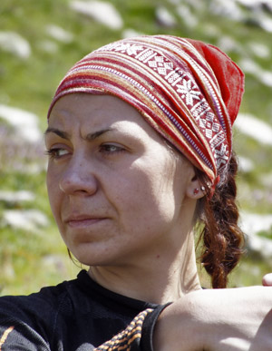 К вечеру погода начала портиться. Пришёл грозовой фронт. Но мы уже поставили лагерь на скальной гряде, что находится выше "Марии". Каждый занялся своим делом. Тут Танька вскликнула "Ой, что это у меня с волосами?!". Мы все дружно оглянулись и увидели, что у Танюхи наэлектризованы волосы. У Макса слиплись ресницы. Прислушались - железо "поёт". Решили, от греха подальше, выкинуть всё железо выше по склону. Никакого страха, всё делали навеселе, но и техникой безопасности не пренебрегали. Вечером сидим в палатке, поём песни.