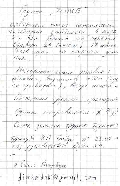 восхождения на Эльбрус прекратилась в 3 часа ночи из-за севшего на ледник облака. Послепоходный отдых свёлся к неделе на