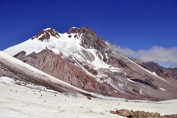 Южный макросклон Кавказа в районе Казбека получает меньше осадков, чем северный, поэтому ледники здесь сохраняются
