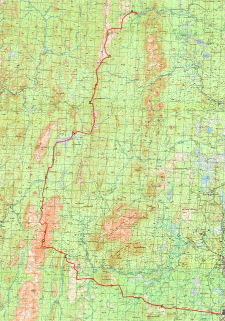 Нитка маршрута: Город Ивдель - р. Ивдель - траверс хребта Хоза-Тумп - река Кутим - река Большие Паймары - траверс Главного Уральского Хребта (до в. 1410 м) - река Сосьва - "Кривинская дорога" - посёлок Калья - город Североуральск