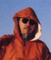 Обошли вершину и вышли на следующий перевал. Дальше пошли прямо по гребню, рассчитывая выйти на главную вершину. Поднимаемся вверх, ничего не видно, сплошная облачность. Спрашиваю: "Куда идти?", а Деменев и говорит: "Вылезем наверх - видно будет". Выбрались на какую то вершину, дует, ничего не видно - опять рукль обманул. Походили вокруг, везде спуск, решили, что мы на главной вершине, но всё же сомнения остались.