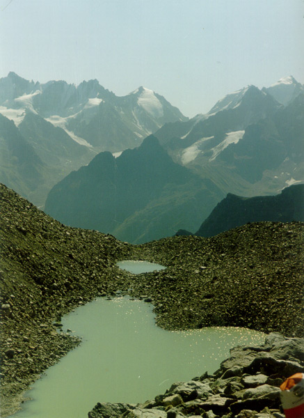 поэтому камнепады "ходили" в любое время дня и ночи. На вершинах и ледниках стаял весь снег. Огромные трещины