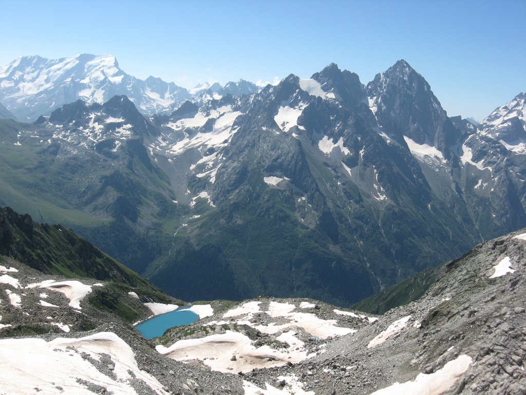 Вид с превала Дырявый на одно из озер Трехозерной долины << начало >>