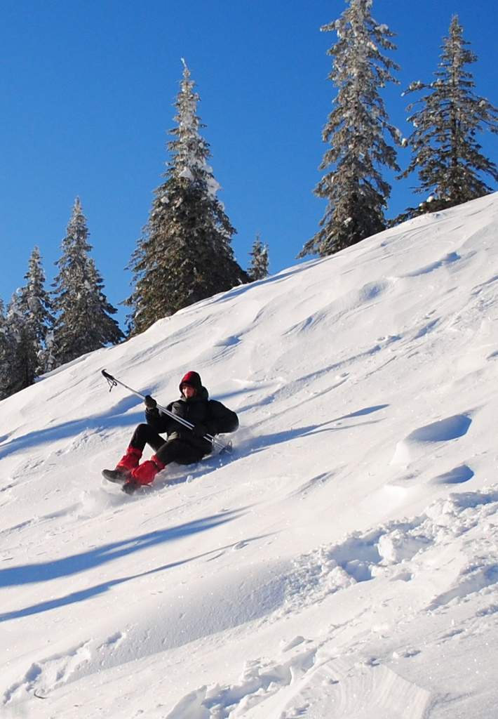Тренировки по самозадержанию на склоне при помощи лыжных палок