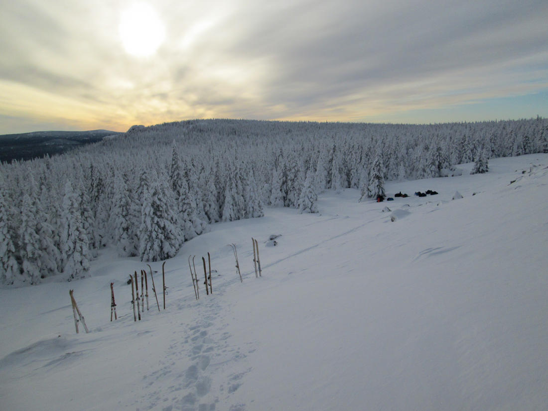 Лыжи и рюкзаки остались под хребтом на лыжне << начало >>