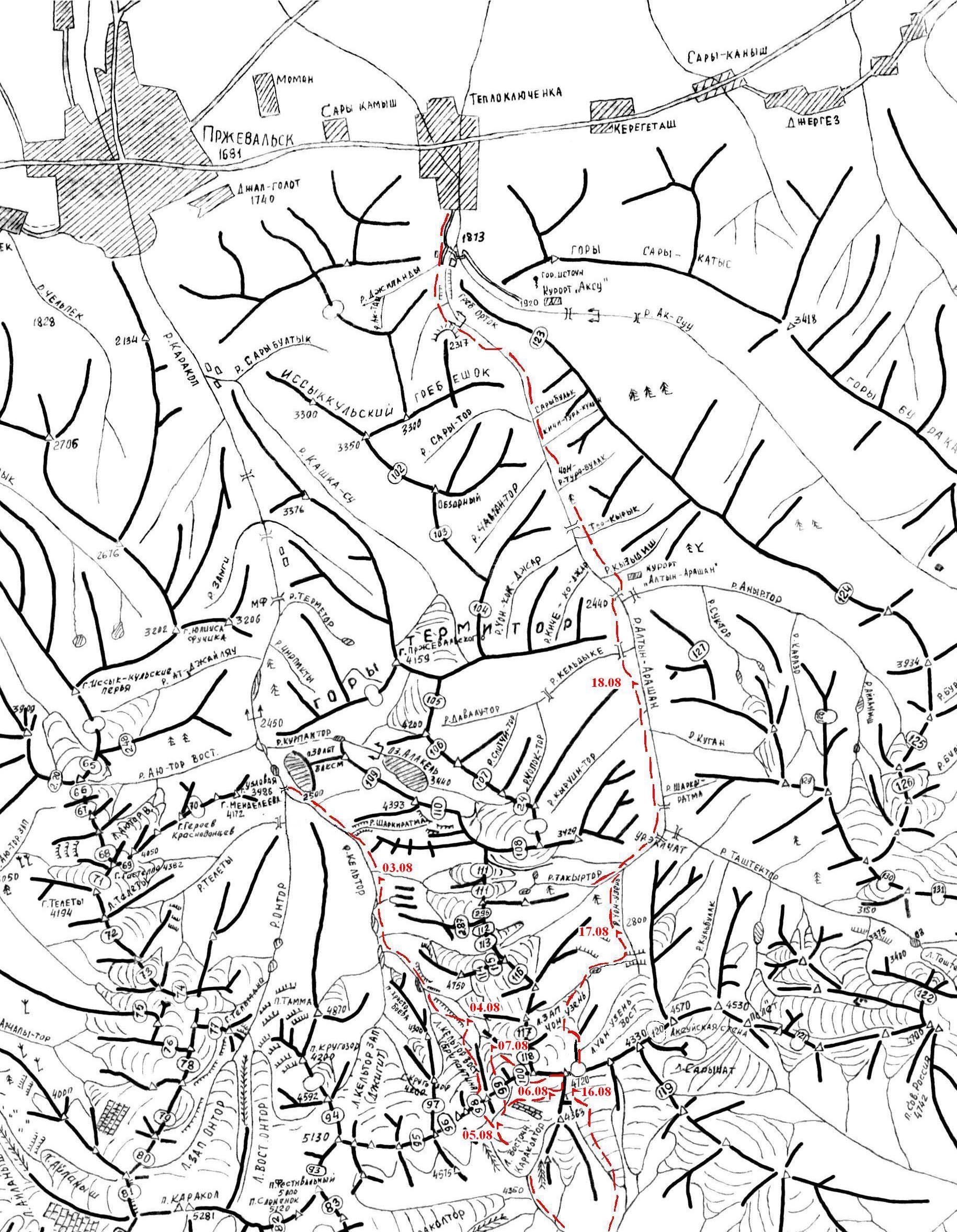 | 17 | 16.08.2009 | 13 | Устье реки Каракол-Тор Зап. - ледник левого притока реки Каракол-Тор Зап. | 15 |