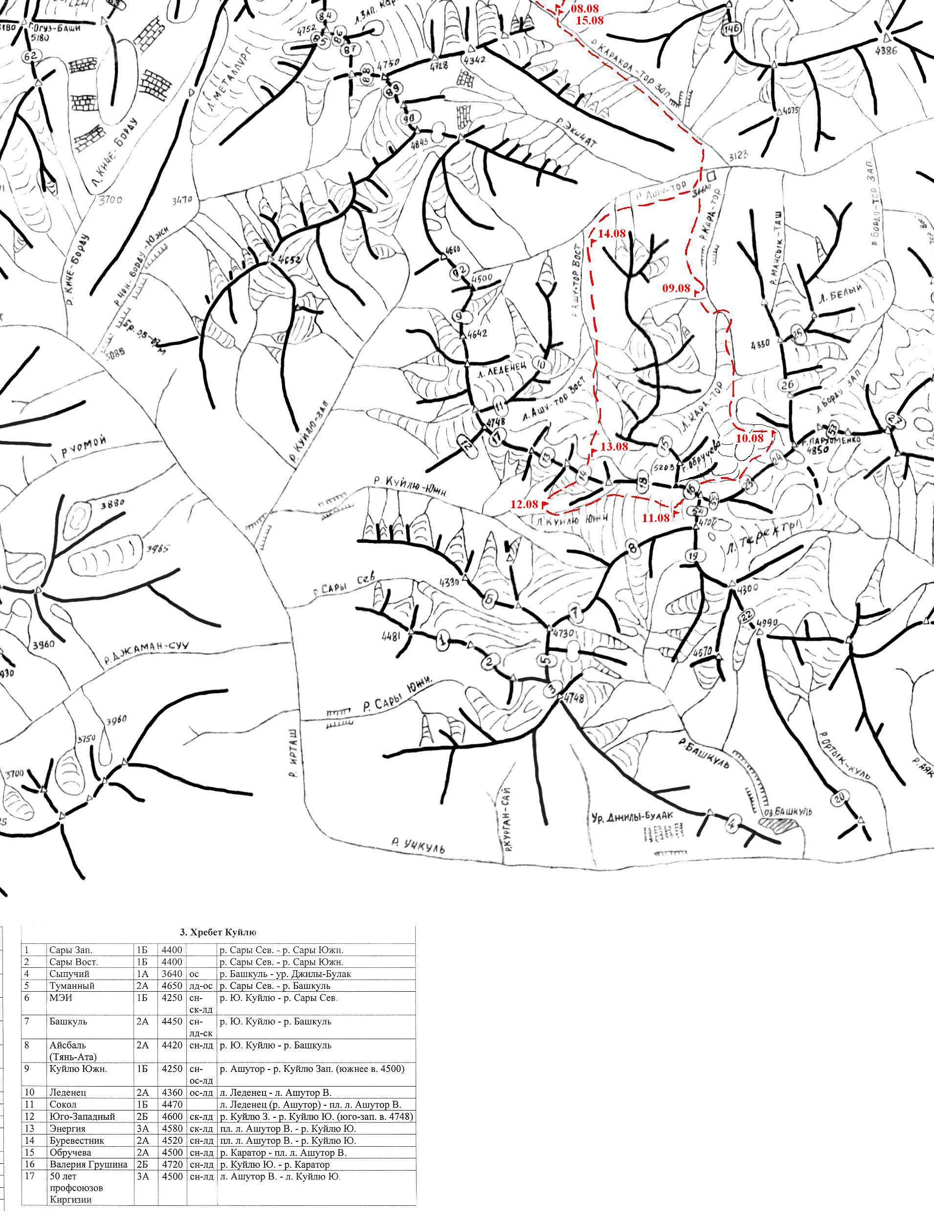 | 15 | 14.08.2009 | 12 | Лед. Ашу-Тор Вост. - река Ашу-тор - устье реки Каракол-Тор Зап. | 20 |